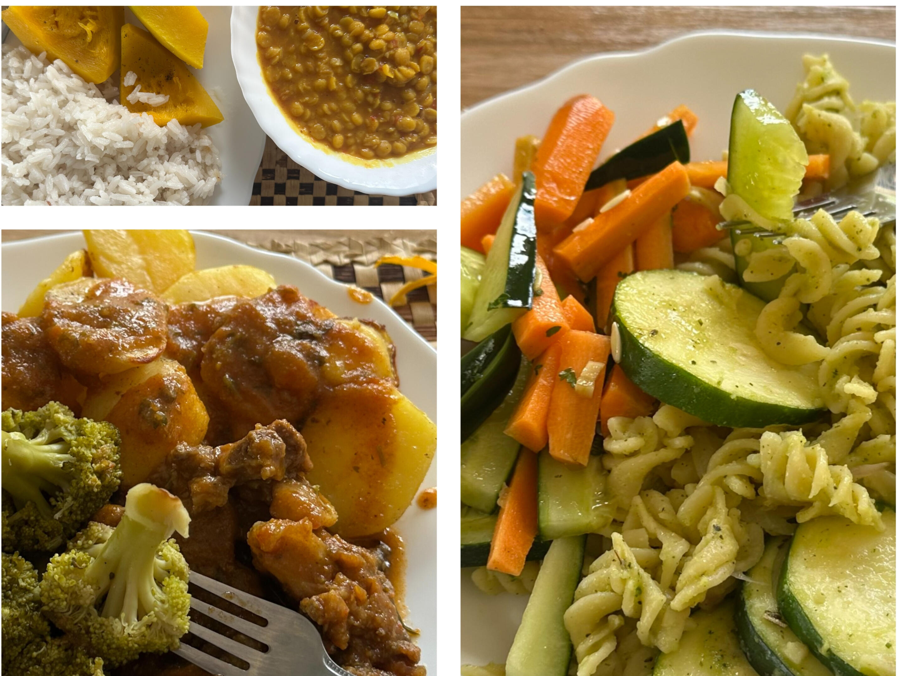 • Lunch (1–2pm): Roast chicken, steamed sweet potatoes, green pea sauce, and pumpkin