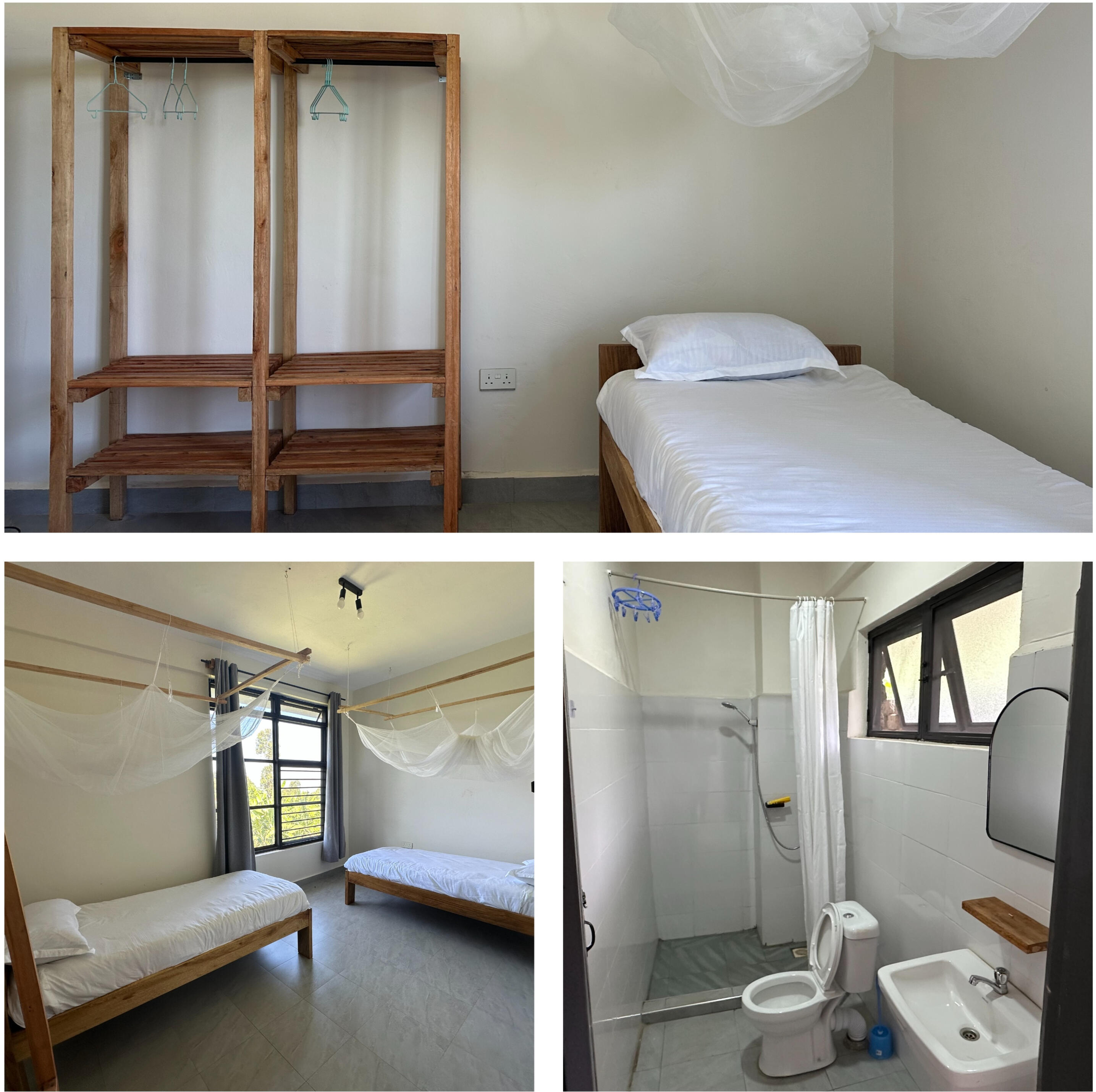 > One couples room with a double bed.The facility is powered by solar energy, supplying reliable electricity for lighting, hot water, device charging, television, and Wi-Fi. This ensures uninterrupted comfort despite frequent grid power cuts in the area, while also supporting environmentally responsible living.